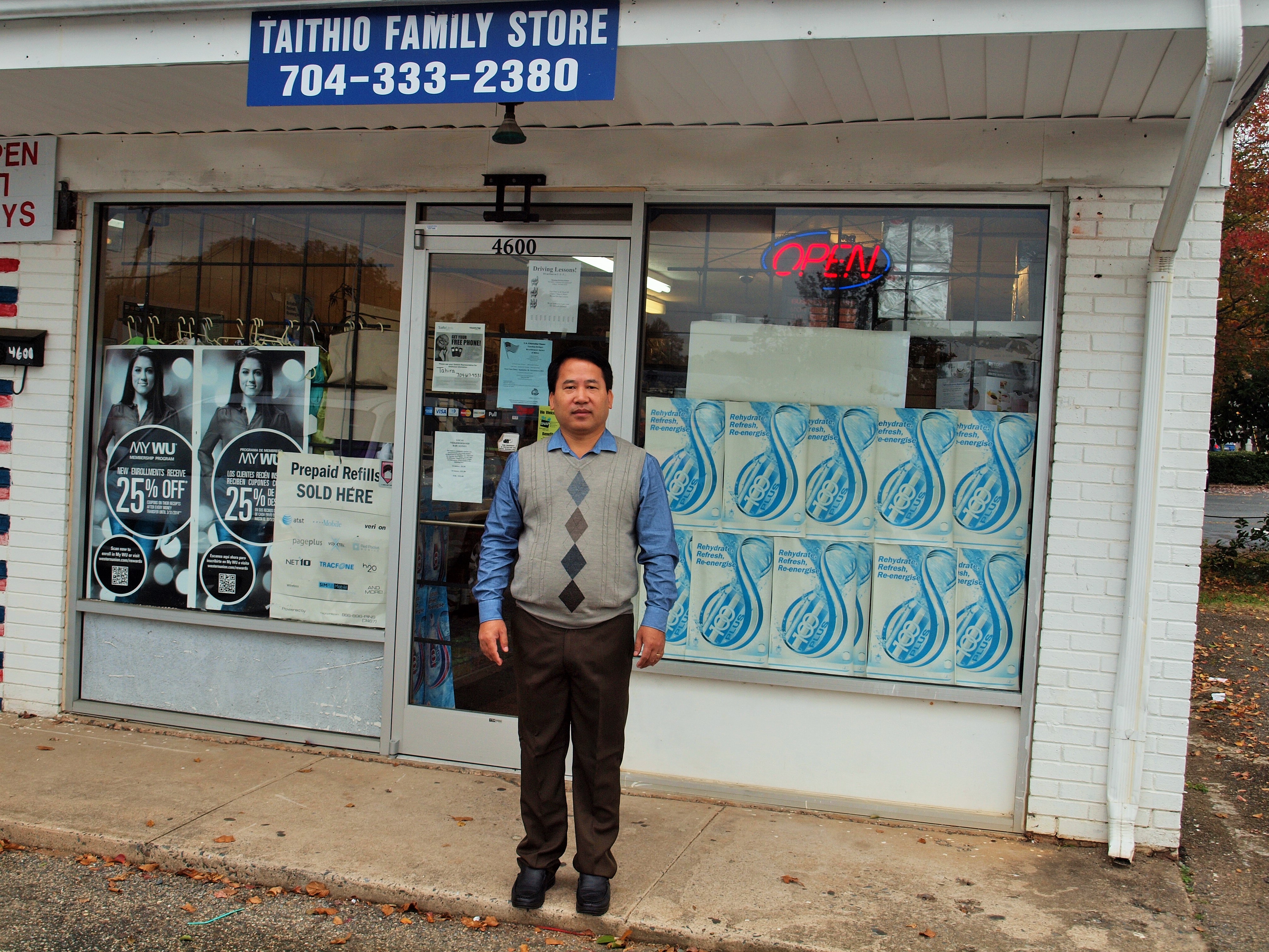 Thanei Taithio proudly stands behind the counter at his convenience store, Taithio Family Store on the corner of Richland Drive and Monroe Road, greeting customers in their native tongue – Burmese and Chin.